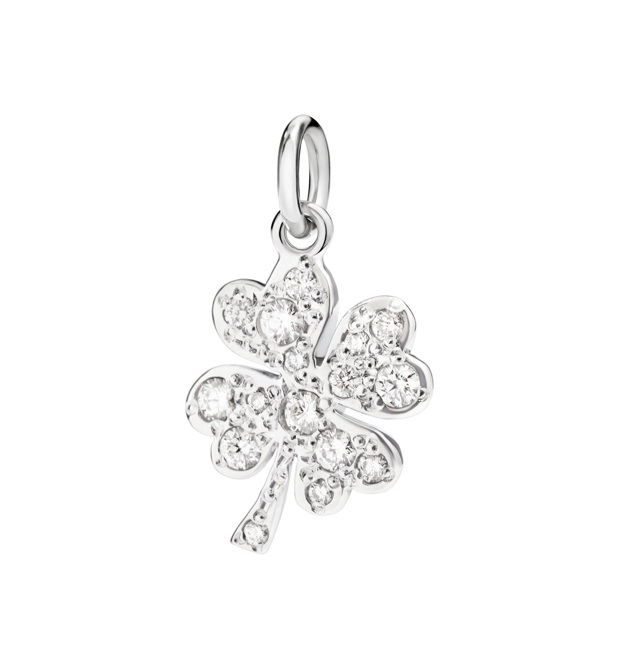 Ciondolo Dodo Quadrifoglio Oro Bianco e Diamanti