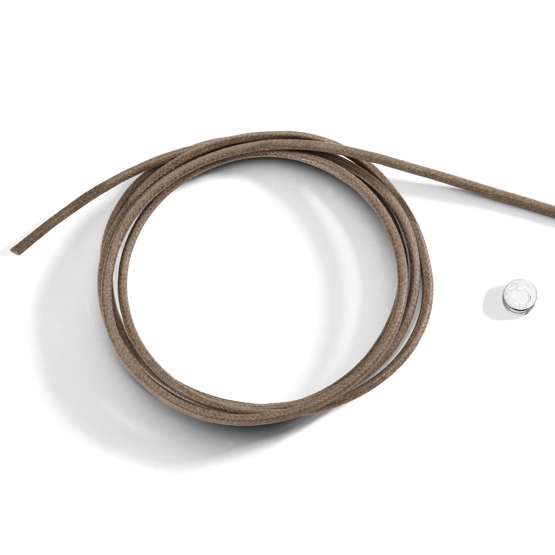 Cordino in cotone tortora spesso. Sigillo in argento 925.